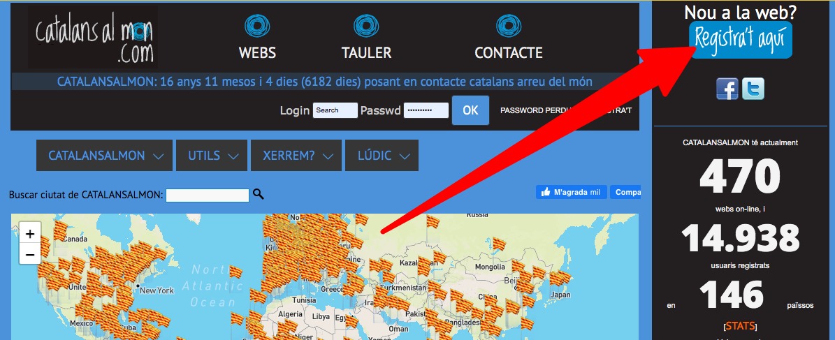 Pots registrar-te a la web 'mare' (catalansalmon.com) o en qualsevol de les 484 webs específiques (com ara catalansanewyork.com o Melbourne.catalansalmon.com) . Busca el link on posa