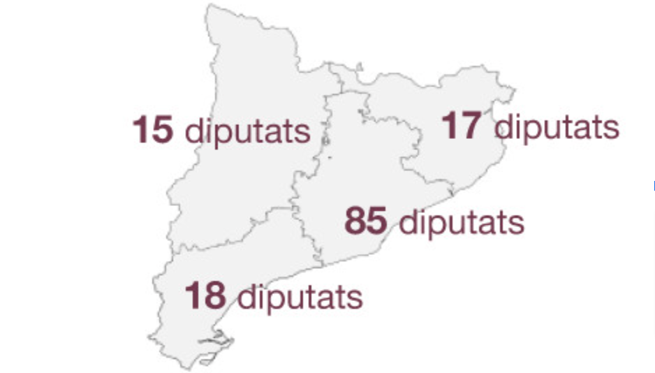Actualment, per a les eleccions catalanes hi ha 4 circumscripcions: Barcelona, Tarragona, Lleida i Girona, que es reparteixen